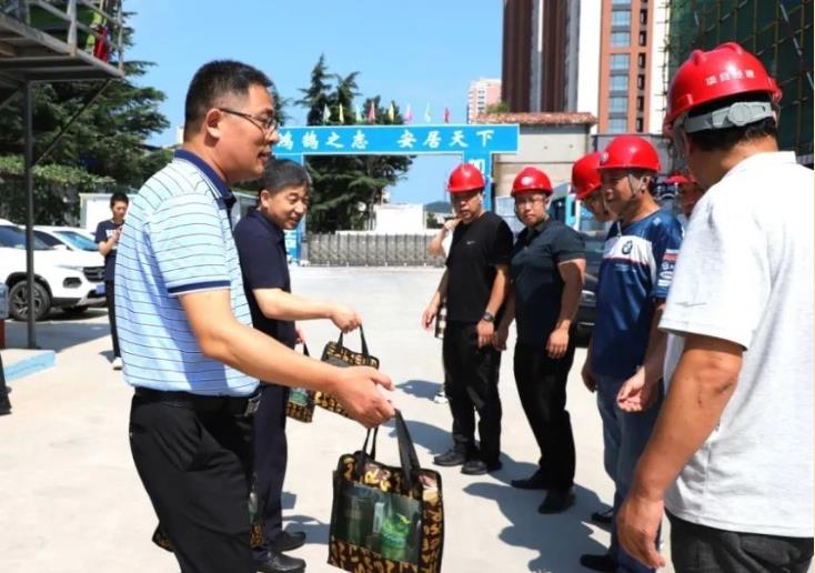 8月4日,市總工會職工服務(wù)中心主任鄭春剛一行在城建集團黨委副書記、總經(jīng)理孫利劍和工會主席闞吉軍的陪同下,到集團新苑陽光項目部為冒高溫、戰(zhàn)酷暑的一線職工送清涼,表達關(guān)懷與慰問。