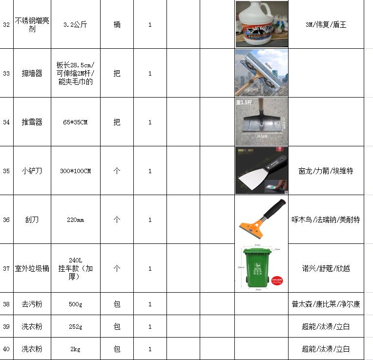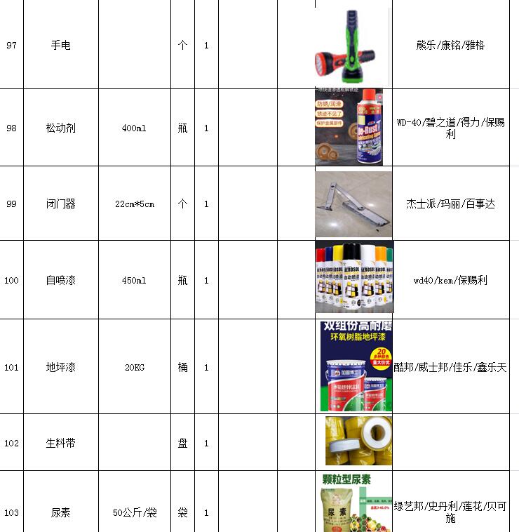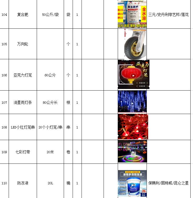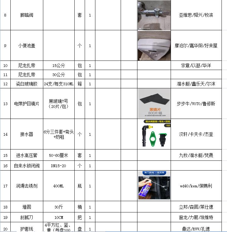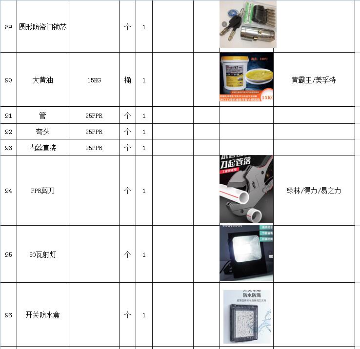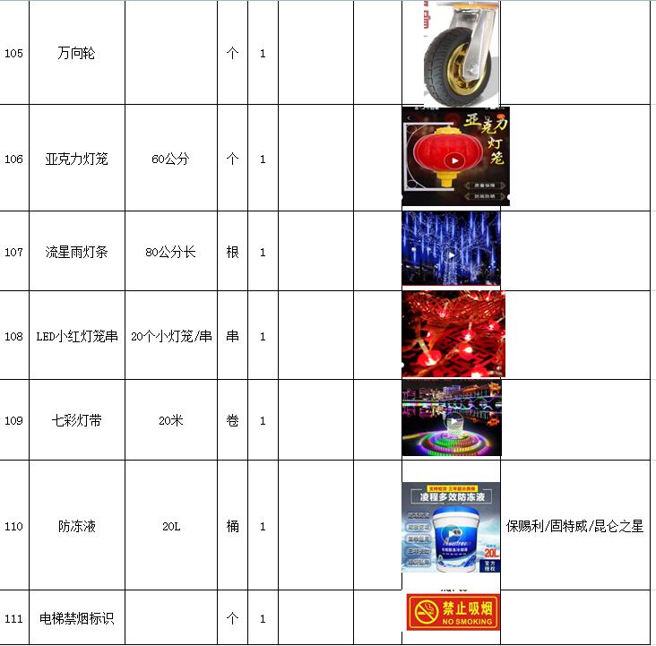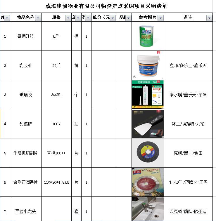 (5)采購內(nèi)容:威海建城物業(yè)物資定點(diǎn)采購,主要包括五金、水暖管件、保潔、維修、綠化所需物資、應(yīng)急維修的其他物資等,采購清單詳見附件。